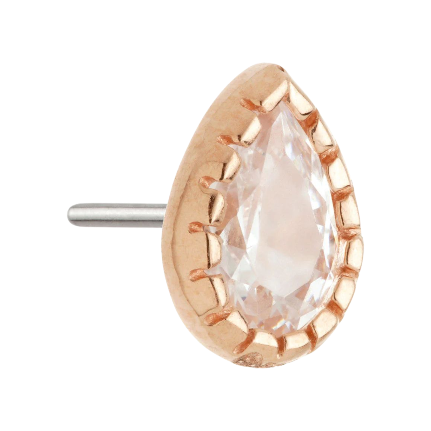 TL — Millegrained Pear Gem Pin Attachment: petite pear with milgrain edging for vintage texture. Details: gauge 1.2 mm; size 3 mm.