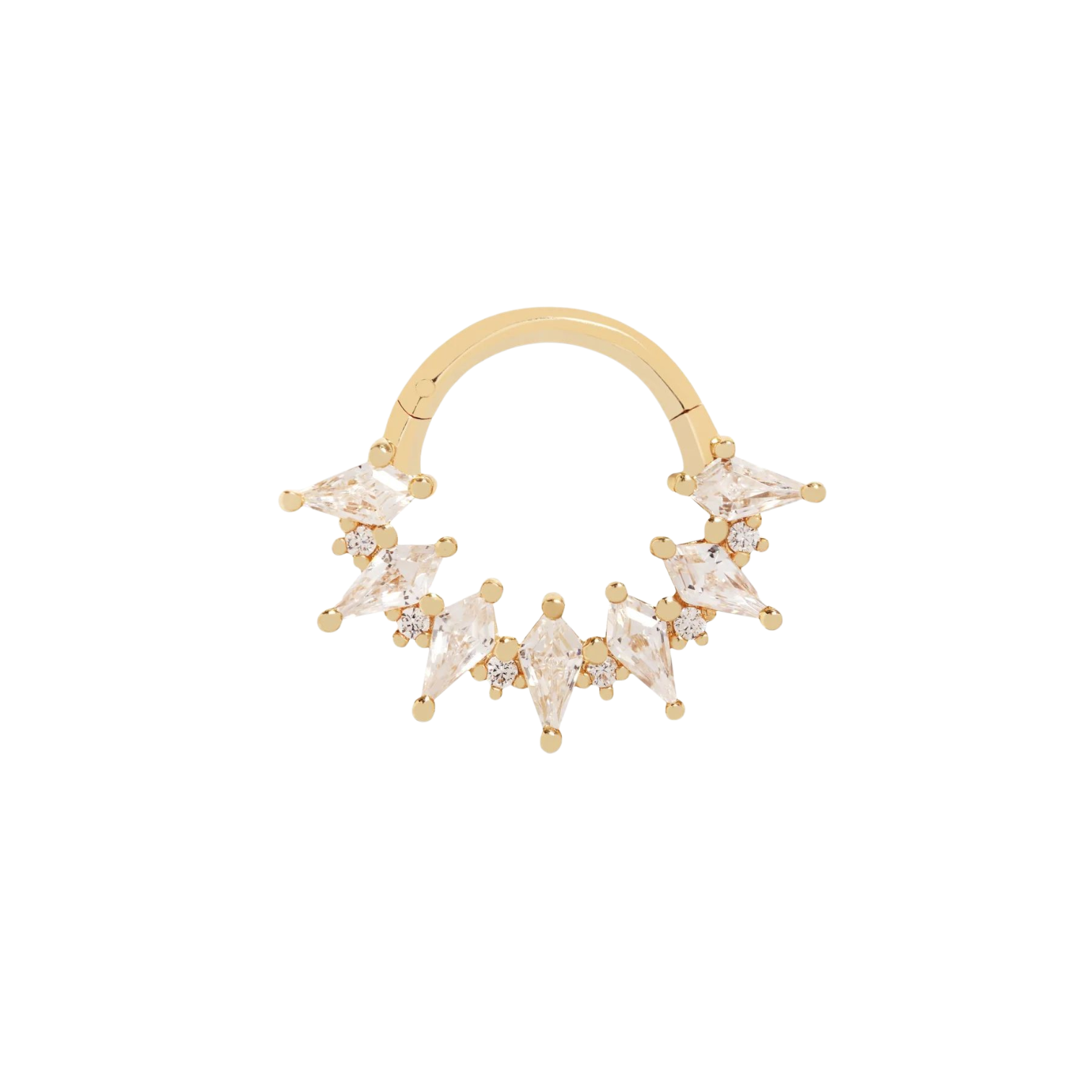 Wonderland Clicker pairs geometric kite-cut CZs with bright polish for a bold yet refined septum/daith look.